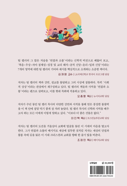 이 책은 팀 켈러 목사의 사역과 내용에 관한 종합적인 연구서다. 시중에 팀 켈러 목사의 저서가 많이 번역되었는데, 아직 그에 대한 평가나 깊은 이해가 많지 않은 실정이다. 저자는 오랫동안 팀 켈러 목사를 연구하면서 특히, 팀 켈러 목사의 신학과 복음∙도시∙현대 문화에 관한 이해는 한국의 많은 신학생과 목회자의 관심 대상이 되었지만, 전반적으로 이해를 돕는 책이 거의 없다는 생각에 이 책을 집필했다. 그래서 이 책은 팀 켈러 목사의 사상 전반에 대한 기본적인 소개와 함께 팀 켈러 목사가 말하는 통찰을 ‘연결과 소통’이라는 “틀”로 꿰뚫는 작업을 했다. 팀 켈러 목사가 말하는 신학적 비전이 무엇인지 서술하면서, 신앙인 각자의 자기 성찰과 교회 스스로의 자기 성찰을 촉구한다. 또한, 진정한 영적인 소통과 연결을 위해서 믿지 않는 이웃과 세상과의 관계 속에서 우월감을 버리고 하나님을 드러내는 일에 주력하라고 저자는 되짚어 주문한다. 정말 영적으로 어려운 지금 이 시대에, 성도를 복음 앞으로 인도하여 자기 성찰을 할 수 있도록 우리 모두를 복음 앞으로 다시 불러들일 수 있는 좋은 책이라 확신한다.