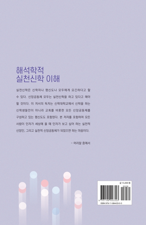 실천신학은 신학자, 신학도, 그리고 평신도 모두에게 요긴하다고 할 수 있다. 신앙공동체 모두는 실천신학을 하고 있기 때문이다. 이 저서의 독자는 신학대학교에서 신학을 가르치거나 배우는 신학자들과 신학도들이다. 그러나 교회를 비롯한 모든 신앙공동체를 구성하고 있는 평신도도 독자에 포함되는 이유이다. 본 저자를 포함하여 모든 사람이 인자가 세상에 올 때 인자가 보고 싶어 하는 실천적 신앙인, 그리고 실천적 신앙공동체가 되었으면 하는 마음으로 본 저서를 출판하게 되었다.