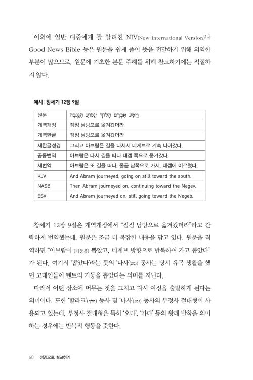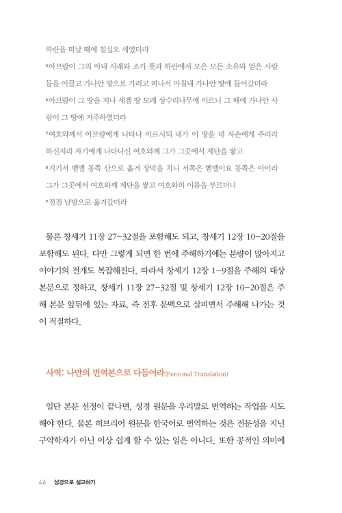 본문을 정확하고도 적절한 눈높이로 번역하면, 더불어 경험하게 되는 또 다른 유익 한 가지가 있다. 본문이 우리 눈앞에 매우 선명하게 다가온다는 점이다. 필자는 이러한 현상을 ‘본문이 내 눈앞에서 춤을 춘다’라는 말로 표현하고 싶다. 처음에는 나와는 거리가 먼 것 같던 본문이 나를 향해 한걸음 껑충 뛰어 가까이 다가왔기에, 그 본문의 메시지가 나의 머리와 가슴에 들어오려 한다는 느낌을 받을 것이다. 본문에 대한 수많은 아이디어가 이미 생겨난 것이라고 할 수 있겠다.